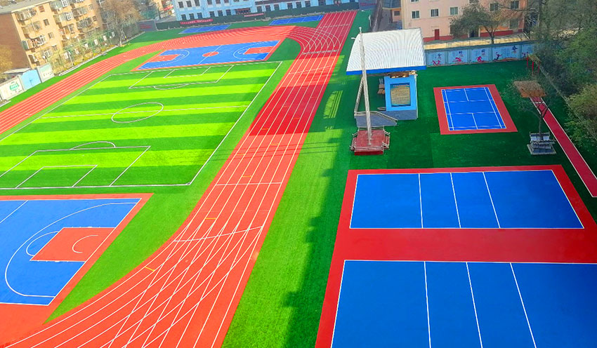 我们为客户提供了学校运动区解决方案,包括田径场全塑型塑胶跑道,人造草足球场,硅pu篮球场,丙烯酸网球场等多个建设项目。