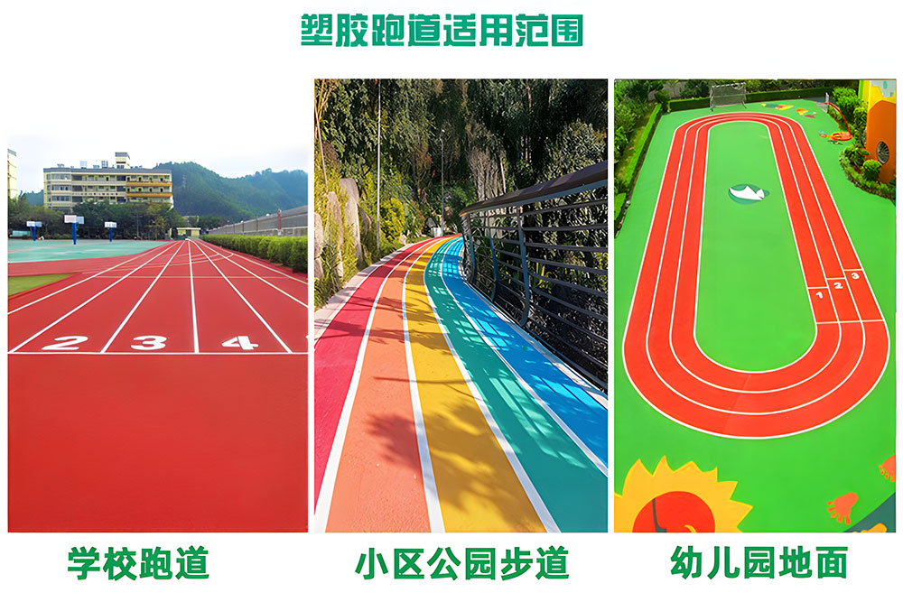 塑胶跑道:透气型、混合型、复合型、自结纹、预制型、EPDM地面等
