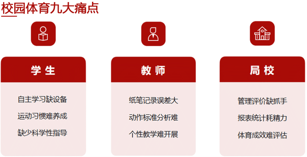 我们的安博电竞安博电竞解决方案将帮助您运动及教学效率的飞跃提升,提高教学水平,同时为学校师生可持续提升运动水平。无论您是小学、中学、大专院校或物业小区广场运动区的管理者,我们的解决方案都将满足您的需求,助您成功提高自身竞争力水平。